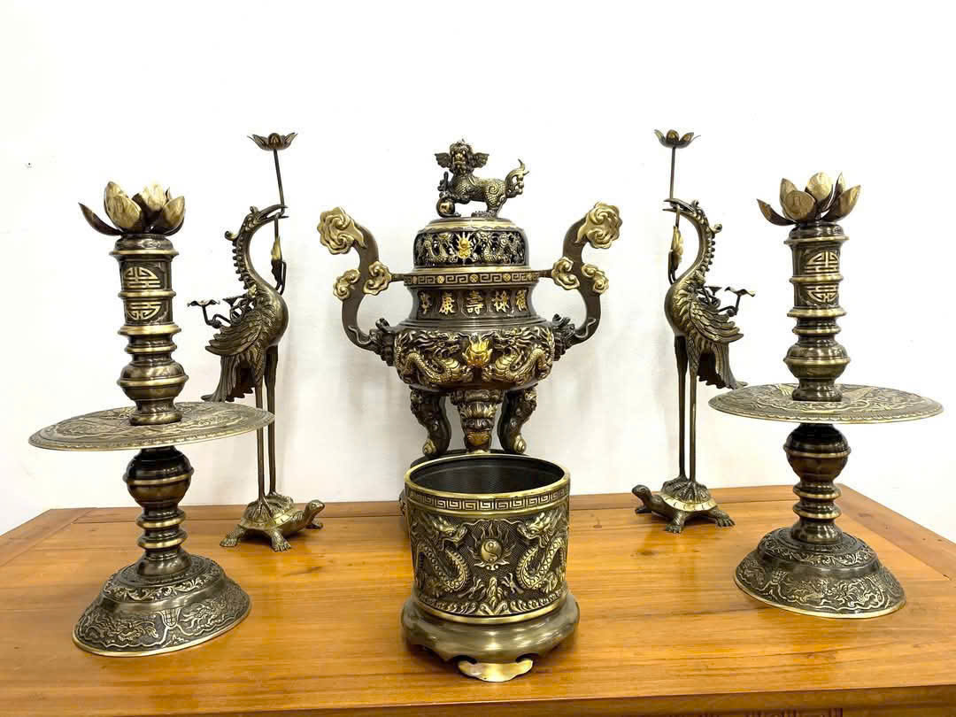 Bộ Ngũ Sự Song Long Tứ Linh Phụng Gia Tiên